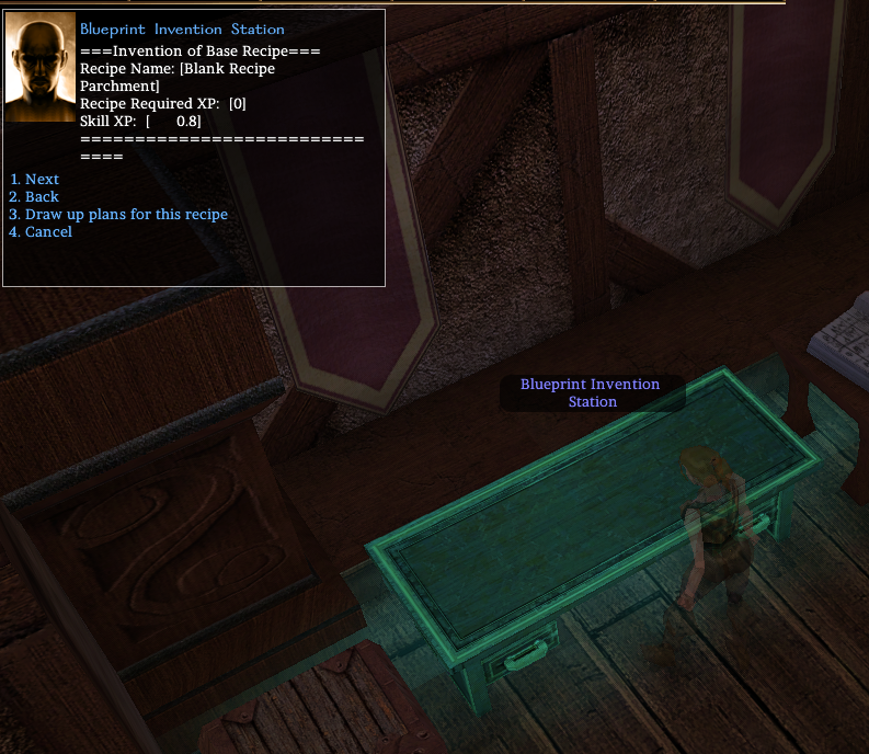 Once built. Any item you put on this table is scanned and evaluated. Think of this way as the character breaking down items and equipment to learn aspects of it. Gaining experience.
